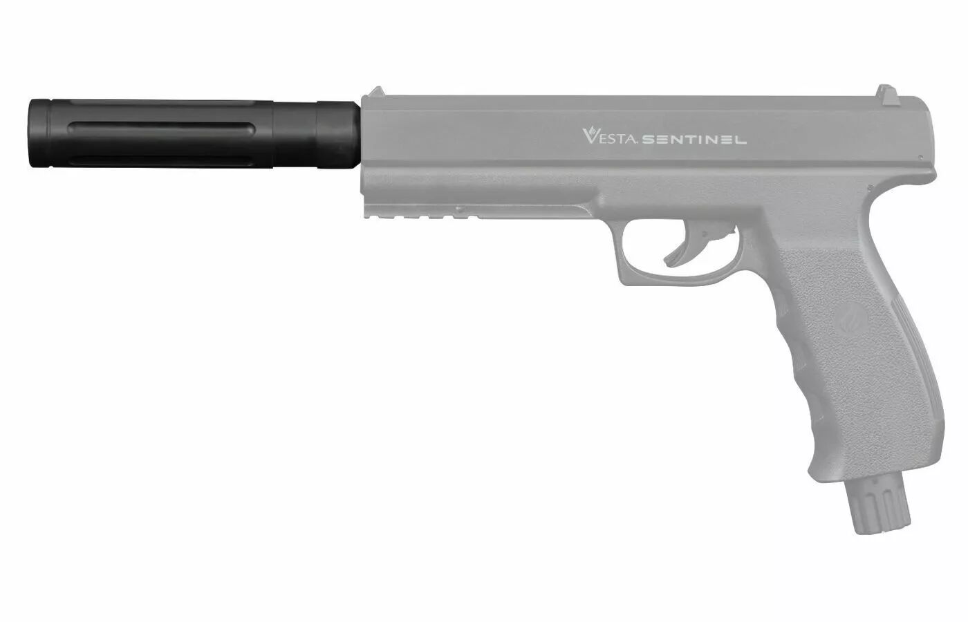 Sous ses airs de silencieux, le Tachyon-S est une extension de canon développée sur mesure pour le pistolet Vesta Sentinel calibre .50. Pensé pour optimiser la puissance, la portée et la stabilité des tirs, il s’intègre parfaitement au filetage avant d’origine du Sentinel afin de conserver l’équilibre et l’ergonomie de l’arme.