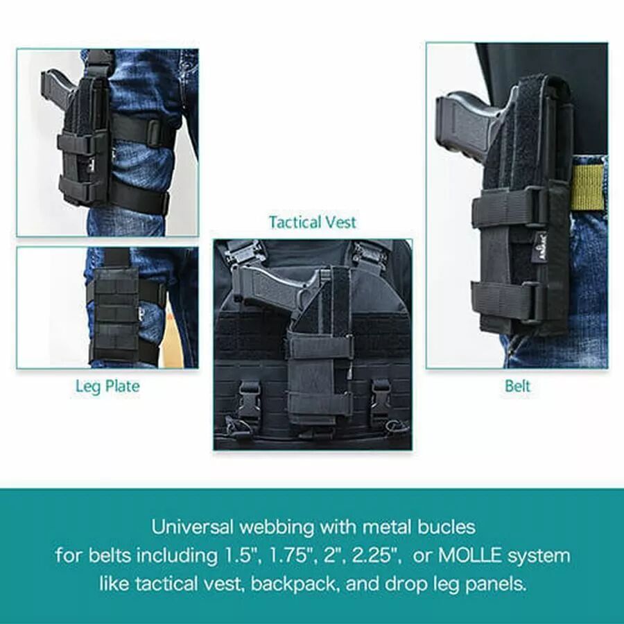 Pour un joueur d’airsoft, un tireur sportif ou un professionnel de la sécurité, ce holster représente un excellent compromis entre adaptabilité, modularité et coût maîtrisé. Il permet d’intégrer facilement votre arme à votre plateforme tactique (cuisse, ceinture, ceinturon, gilet) sans négliger la qualité. Le choix du noir classique lui permet également de se fondre dans un environnement tactique urbain ou outdoor.