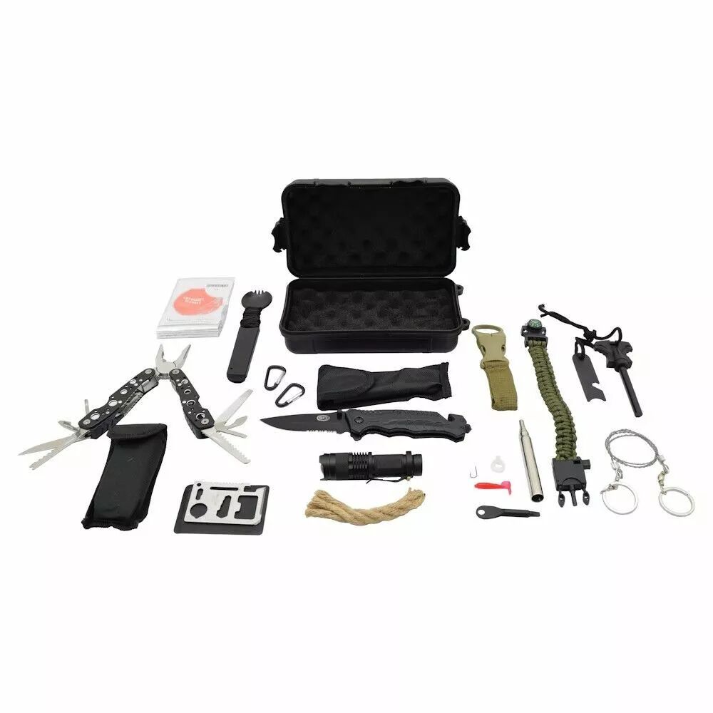 Ce kit complet de survie en mallette rigide est conçu pour regrouper une sélection d’outils et d’accessoires utiles en outdoor, randonnées ou situations nécessitant une autonomie fonctionnelle en environnement naturel. Présenté dans une mallette protectrice rigide et compacte, ce kit facilite l’organisation, le transport et le stockage des éléments indispensables à la survie de base.