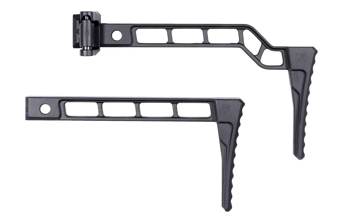 Les deux crosses sont réalisées en métal, assurant une structure rigide et durable, adaptée aux manipulations courantes en airsoft. La finition noire s’intègre naturellement aux répliques Stribog et aux configurations tactiques sobres ou modernes.