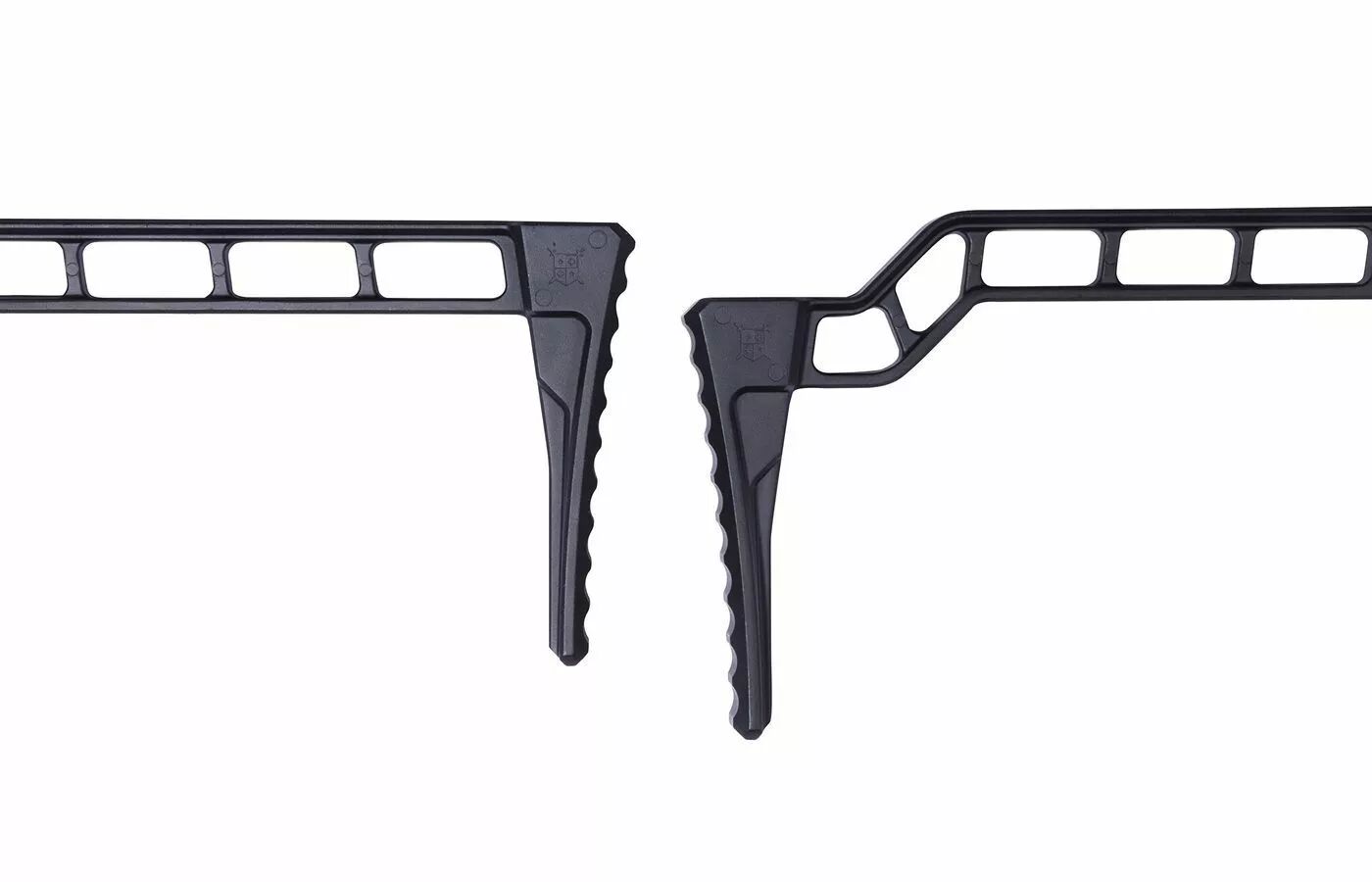 Ce kit double crosse repliable Delta Armory en finition noire est destiné aux répliques airsoft type Stribog ou tout autre modèle équipé d'un rail Picatinny à l'arrière. Il se compose de deux crosses distinctes en métal, fournies avec un montage RIS repliable commun, permettant d’adapter la configuration arrière de la réplique selon les préférences ergonomiques ou le style recherché.