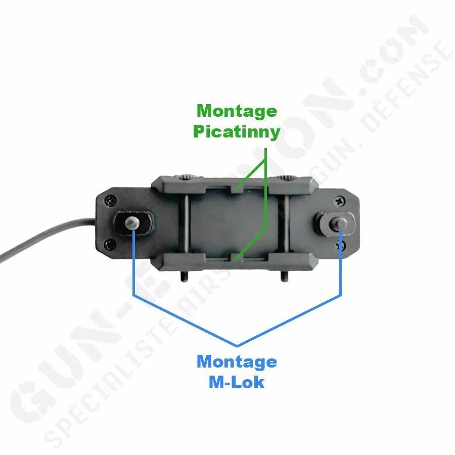 Le connecteur déporté peut lui aussi être installé sur les deux type de montages indépendamment de la lampe. Cela veut dire que vous pouvez très bien fixer la lampe sur un emplacement latéral M-Lok et le switch sur un rail Picatinny ou inversement. La Skywoods L7019A s'adapte donc parfaitement à votre réplique et votre style de jeu.