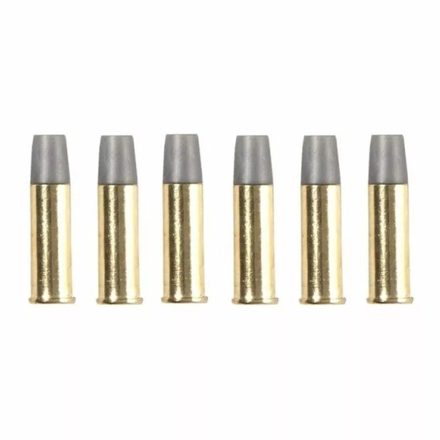 Ce lot de 6 douilles ASG est spécialement conçu pour le revolver Schofield Airgun en calibre 4,5 mm BBs. Ces cartouches, identiques à celles livrées d'origine avec la réplique, permettent de charger une bille acier par douille dans le barillet de la réplique afin de reproduire le fonctionnement et le réalisme du revolver authentique.