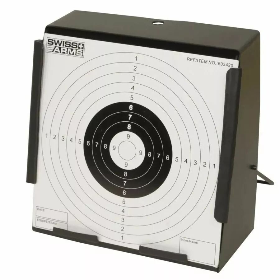Le porte cible métal Swiss Arms 14 x 14 cm avec boîtier récupérateur est l’accessoire idéal pour les séances d’entraînement au tir de précision, en intérieur comme en extérieur. Conçu pour accueillir des cibles carton standard au format 14 x 14 cm, il permet de pratiquer le tir de loisir avec des répliques airsoft 6 mm, des armes à billes acier 4,5 mm ou des carabines à plomb dans un cadre propre et structuré.