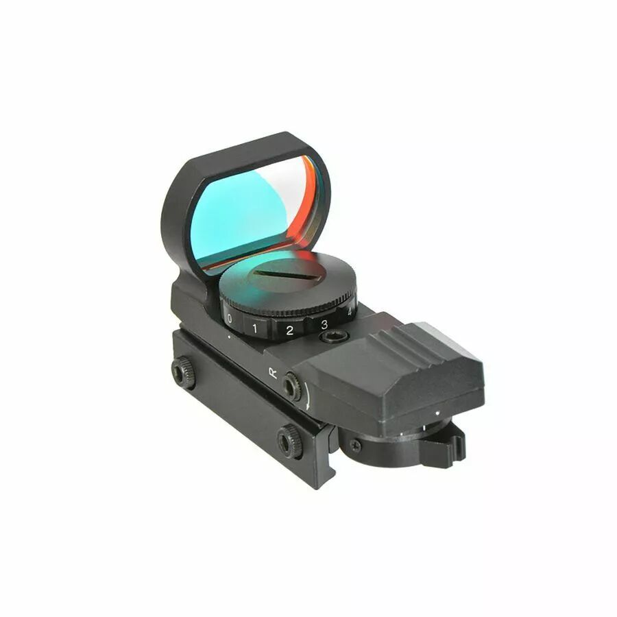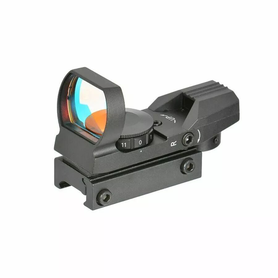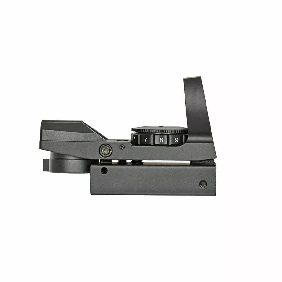 Le corps du viseur est réalisé en métal avec une finition noire mat. Il est équipé d’un montage compatible Picatinny / Weaver 21 mm, standard largement utilisé sur les répliques Airsoft et de nombreuses plateformes tactiques.